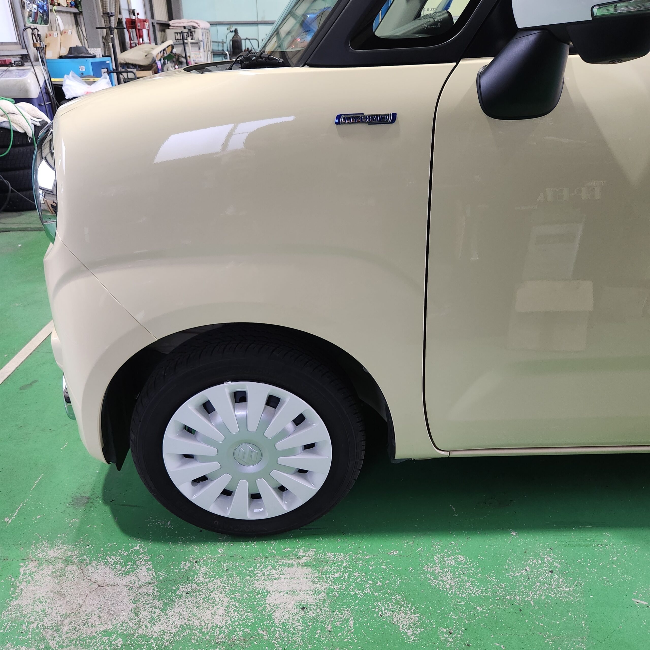 左前方側面、ホイールキャップ交換。