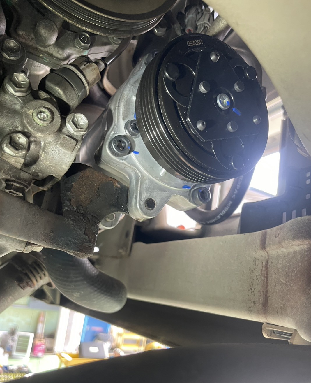 異音の原因はエアコンコンプレッサーからでした⚡